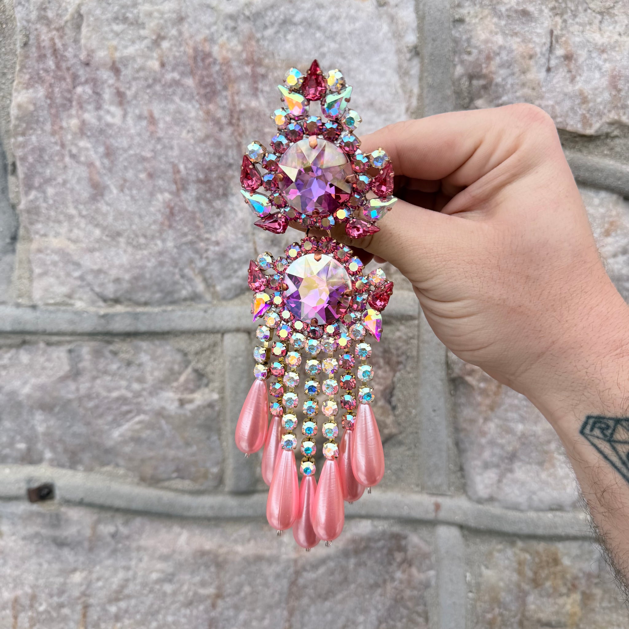 The earrings have clip backs, and the ring features an adjustable ring backing. Made from heavy duty brass settings Imported from Germany.Â