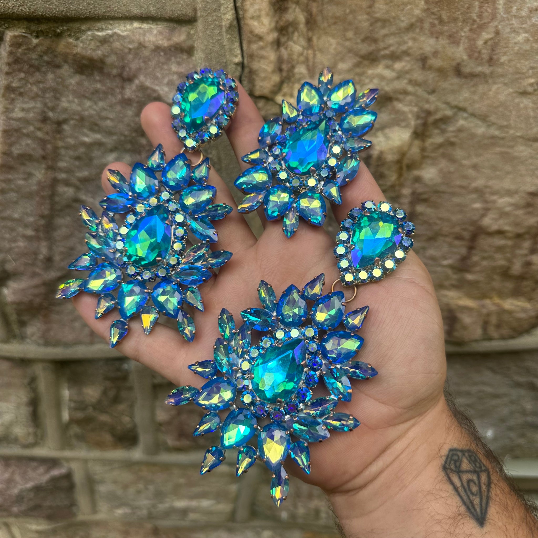 The earrings have clip backs, and the ring features an adjustable ring. Made from heavy duty brass settings Imported from Germany.
